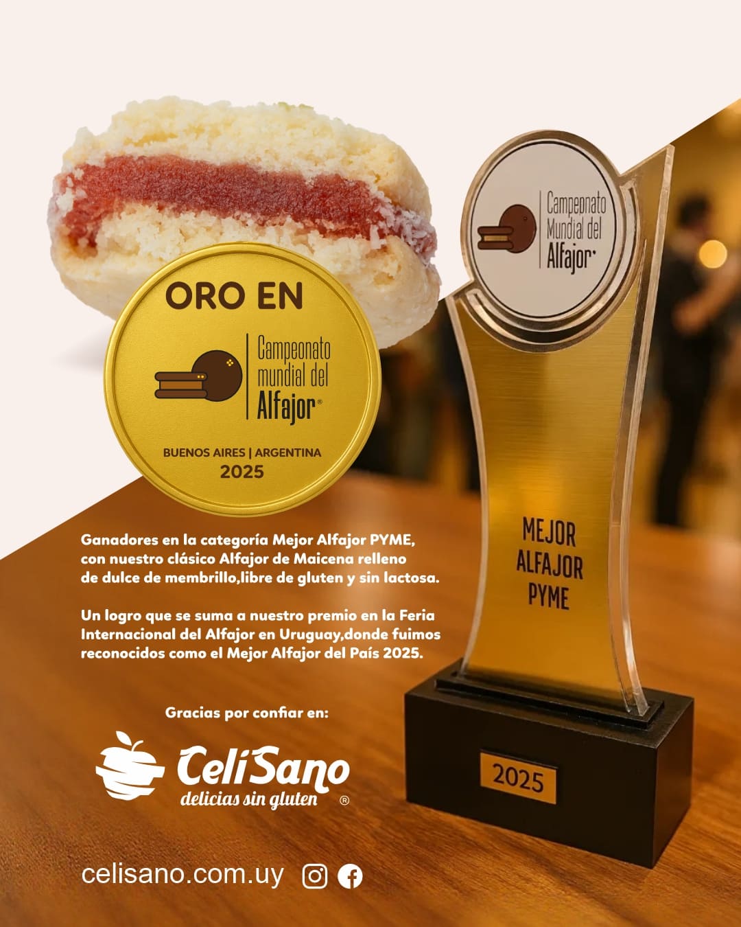 El premio fue para nuestro 𝐀𝐥𝐟𝐚𝐣𝐨𝐫 𝐝𝐞 𝐌𝐚𝐢𝐜𝐞𝐧𝐚 𝐫𝐞𝐥𝐥𝐞𝐧𝐨 𝐝𝐞 𝐝𝐮𝐥𝐜𝐞 𝐝𝐞 𝐦𝐞𝐦𝐛𝐫𝐢𝐥𝐥𝐨, 𝐥𝐢𝐛𝐫𝐞 𝐝𝐞 𝐠𝐥𝐮𝐭𝐞𝐧 𝐲 𝐬𝐢𝐧 𝐥𝐚𝐜𝐭𝐨𝐬𝐚, que 𝐫𝐞𝐩𝐫𝐞𝐬𝐞𝐧𝐭𝐨́ 𝐚 𝐂𝐞𝐥𝐢𝐬𝐚𝐧𝐨 en esta competencia internacional.